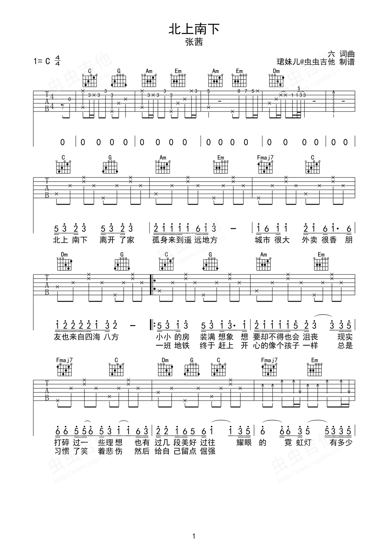 北上南下吉他谱-弹唱谱-c调-虫虫吉他