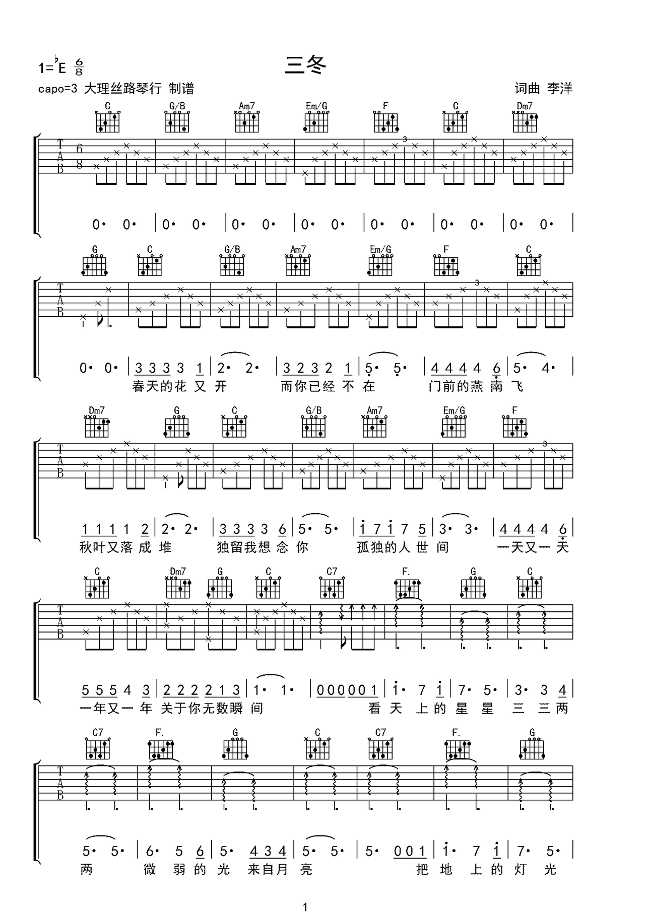 三冬吉他谱-弹唱谱-eb调-虫虫吉他