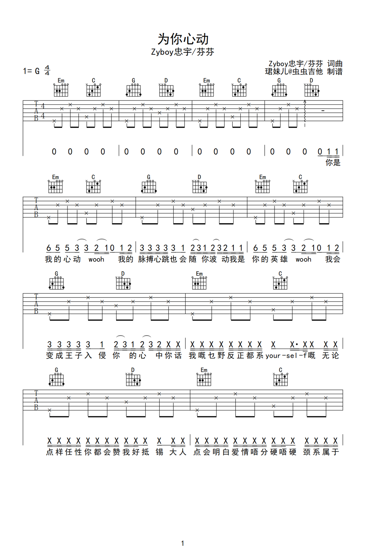 为你心动吉他谱-弹唱谱-g调-虫虫吉他