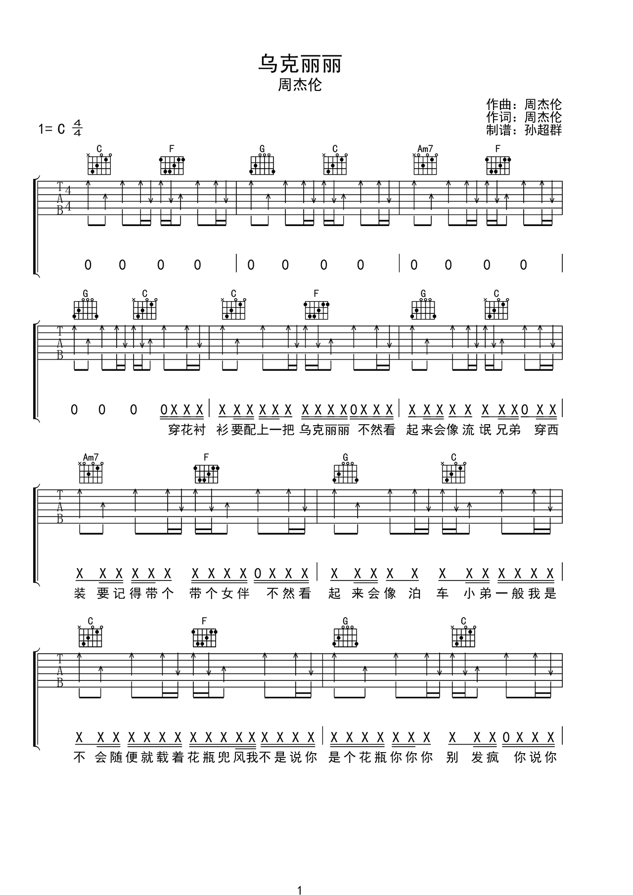 演唱:周杰伦 制谱:老孙弹音乐 C调