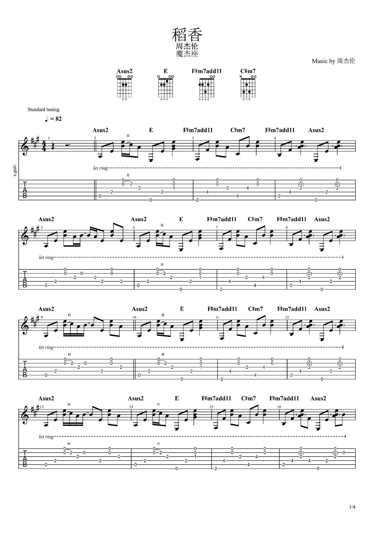 稻香吉他谱-指弹谱-c调-虫虫吉他