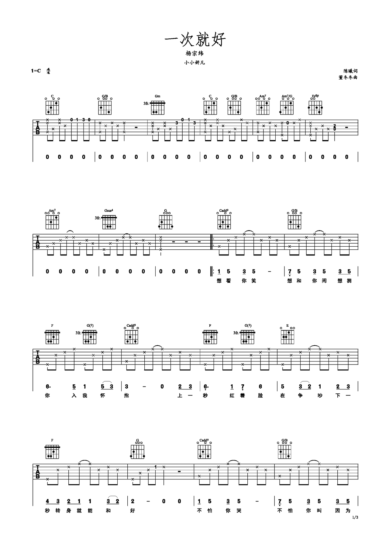 一次就好吉他谱-弹唱谱-c调-虫虫吉他