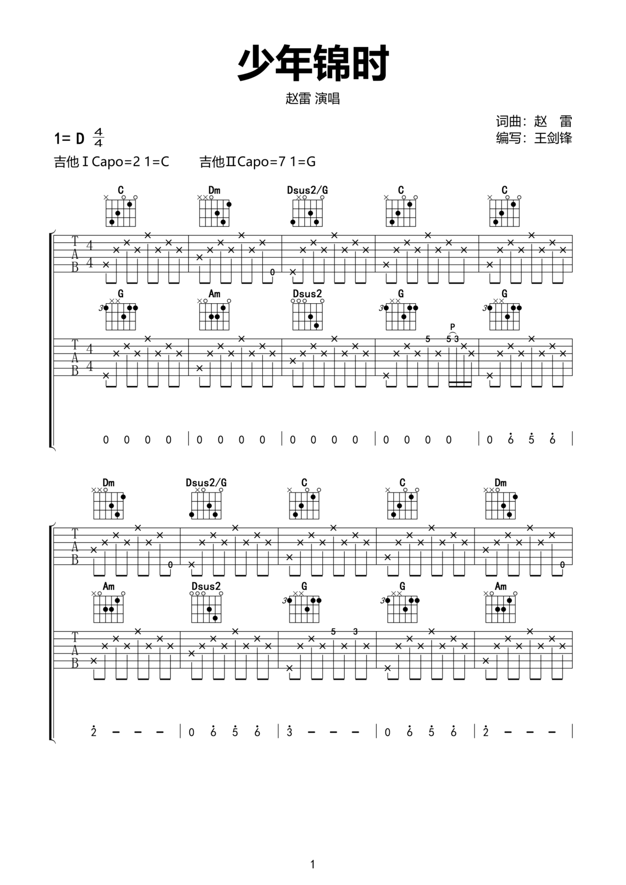 少年锦时吉他谱-双吉他谱-d调-虫虫吉他