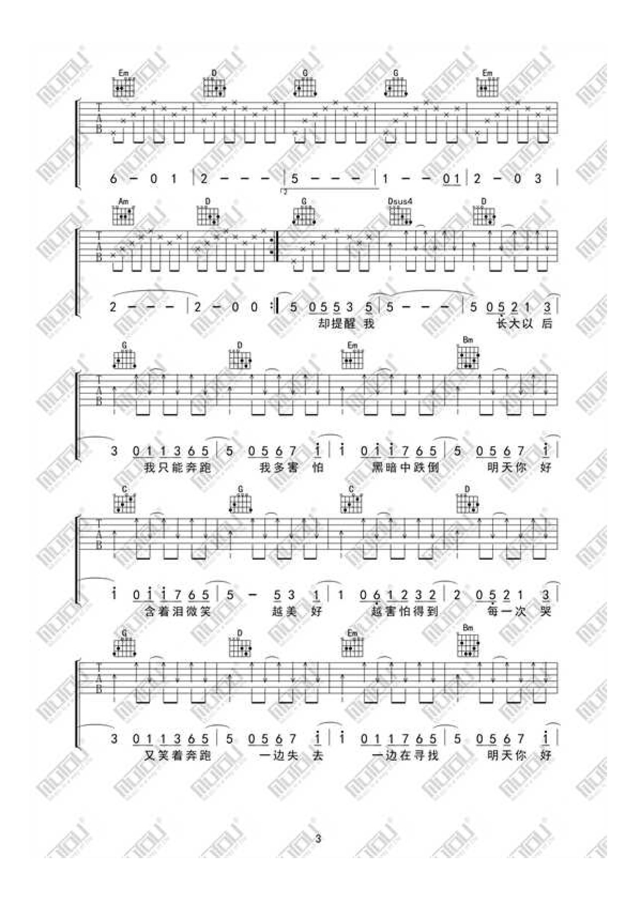 明天你好吉他谱-弹唱谱-g调-虫虫吉他