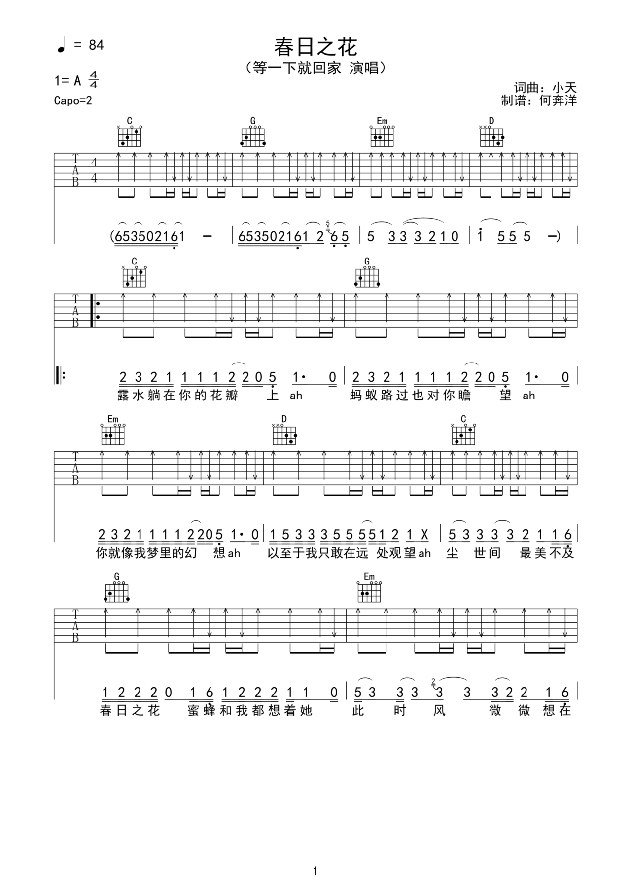 春日之花吉他谱-弹唱谱-g调-虫虫吉他