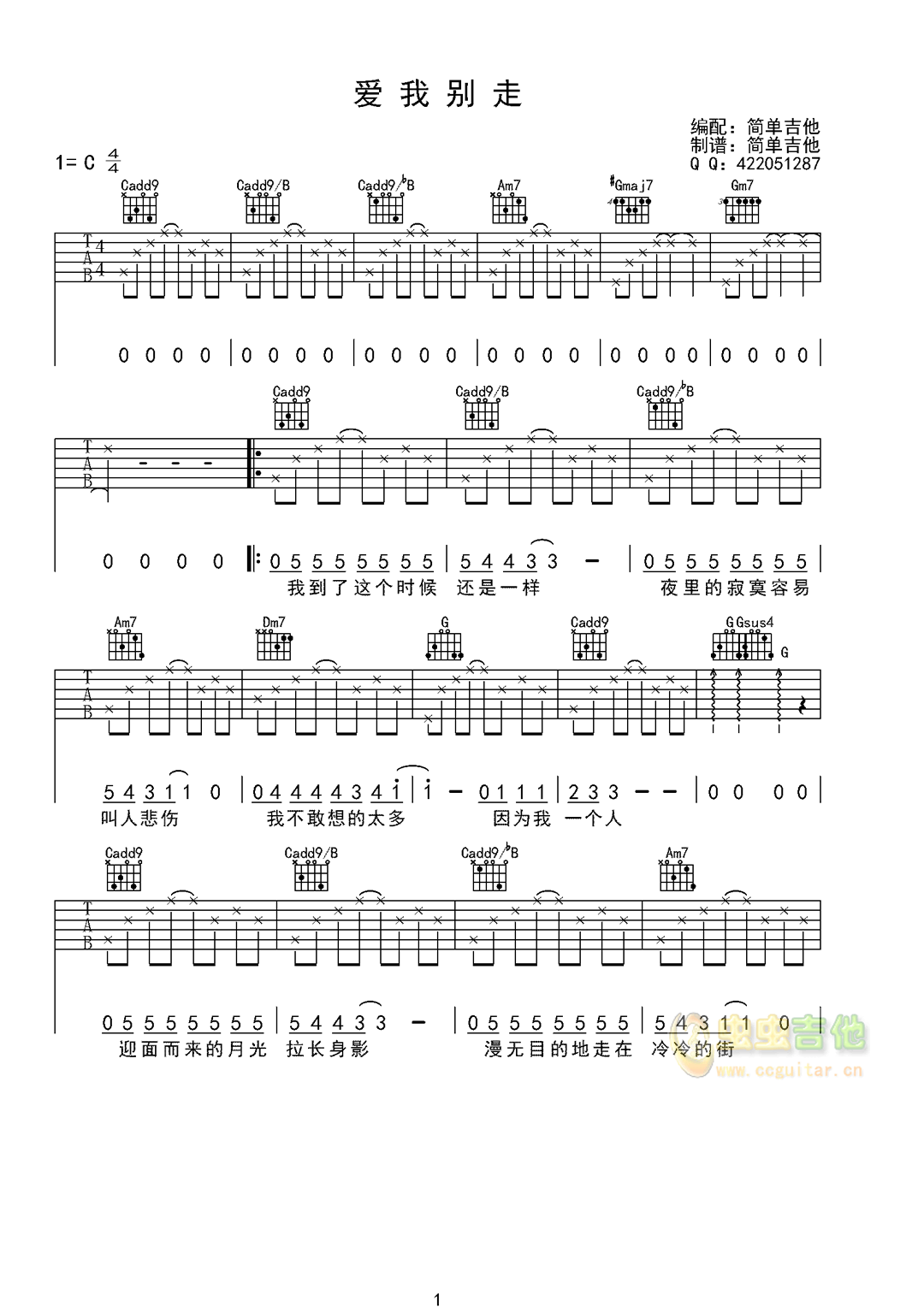 爱我别走吉他谱-弹唱谱-c调-虫虫吉他
