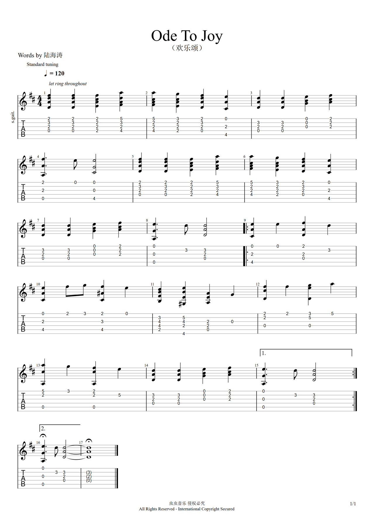 Ode To Joy吉他谱-指弹谱-c调-虫虫吉他