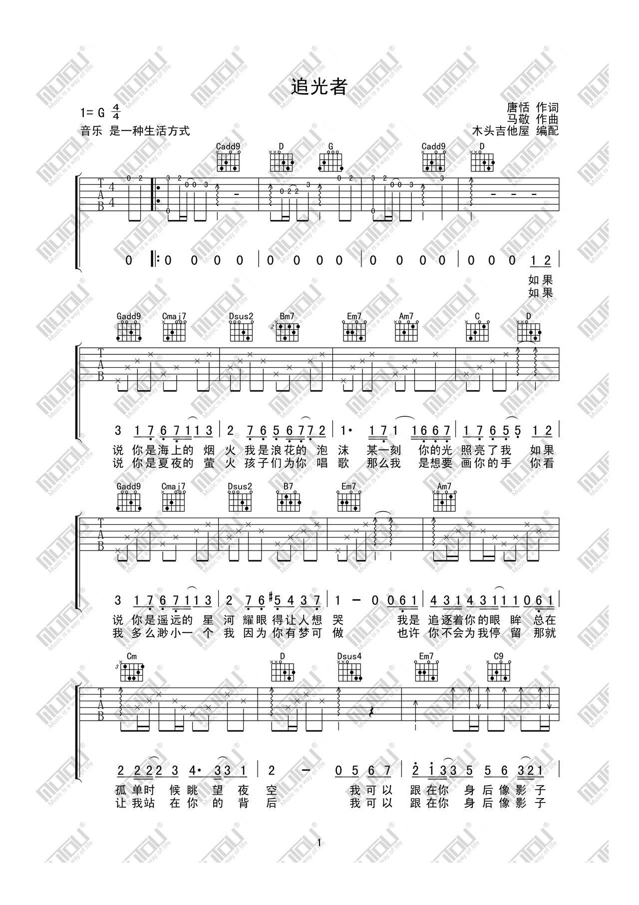追光者吉他谱-弹唱谱-g调-虫虫吉他
