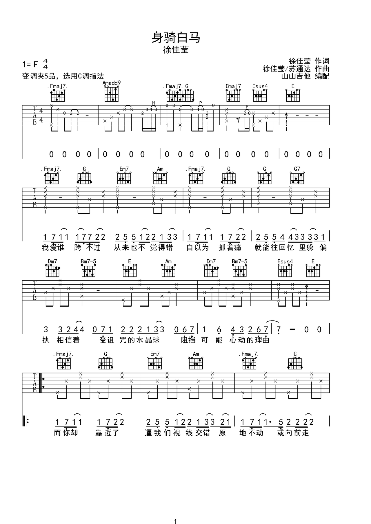 身骑白马 徐佳莹吉他谱 山山吉他编配