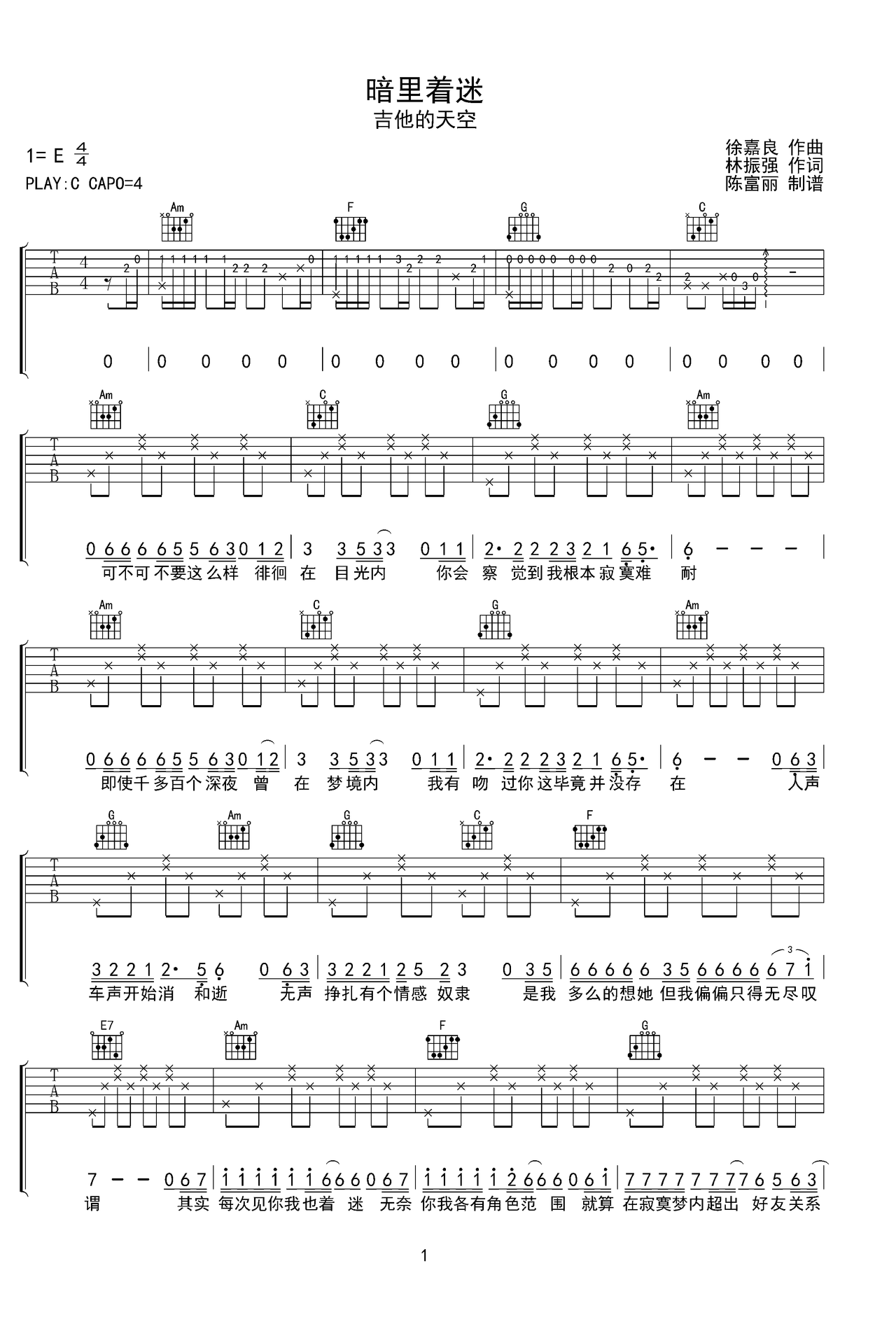 暗里着迷吉他谱-弹唱谱-c调-虫虫吉他