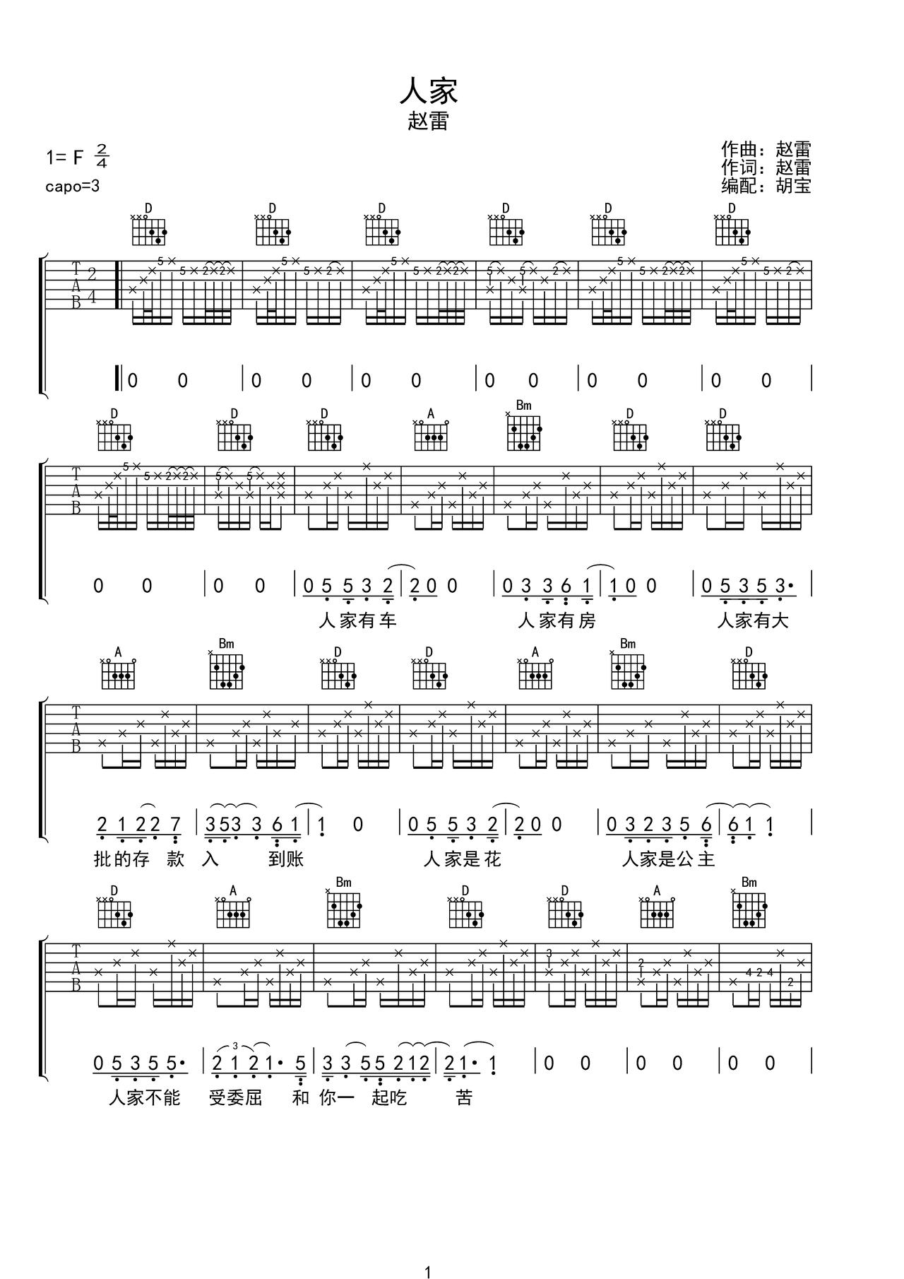人家吉他谱-弹唱谱-f调-虫虫吉他