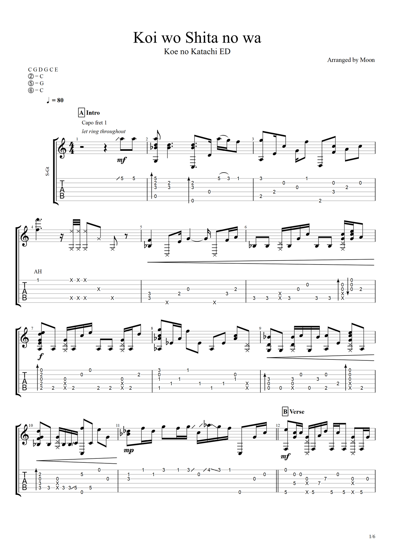 Koi wo Shita no wa吉他谱-指弹谱-f#/gb-虫虫吉他