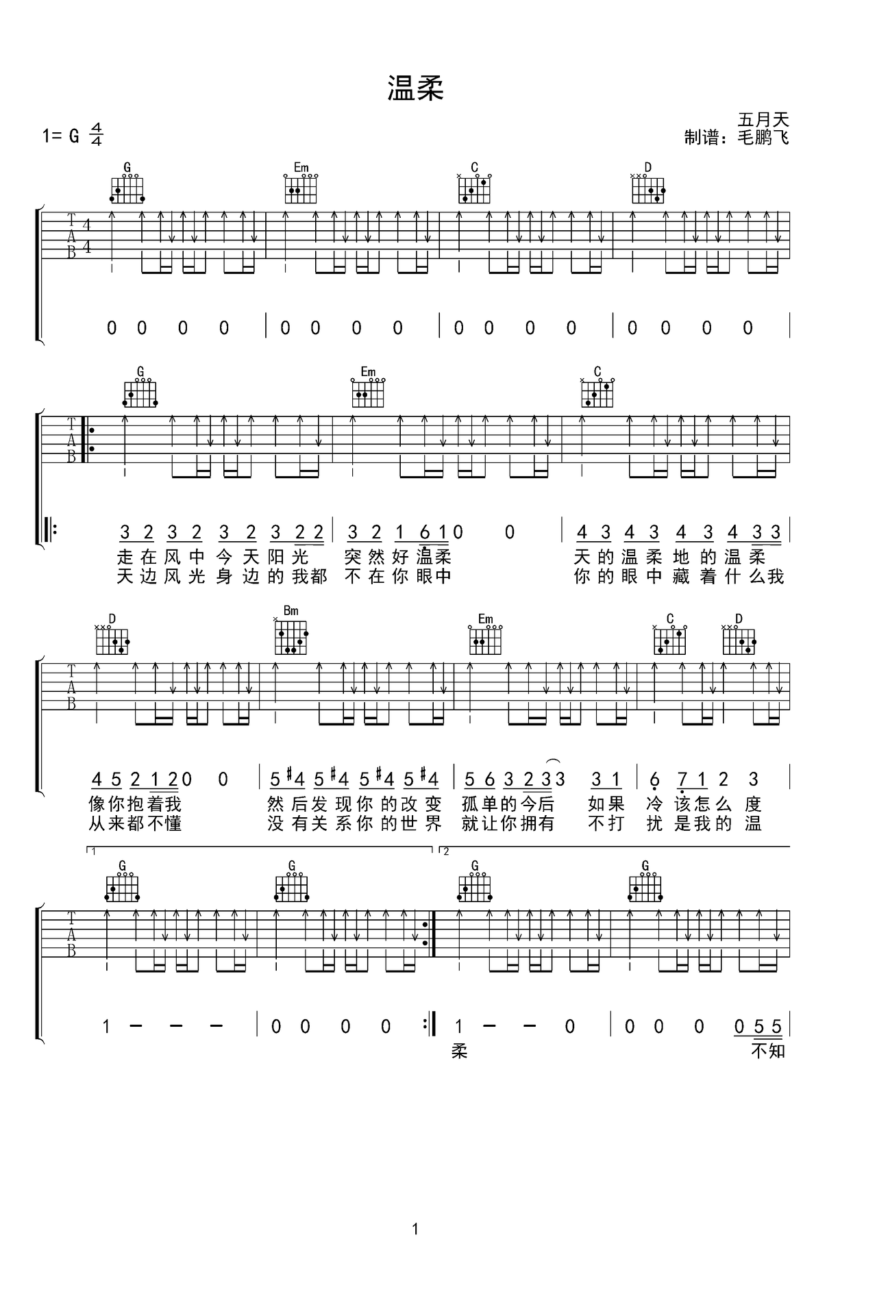 温柔吉他谱-弹唱谱-g调-虫虫吉他