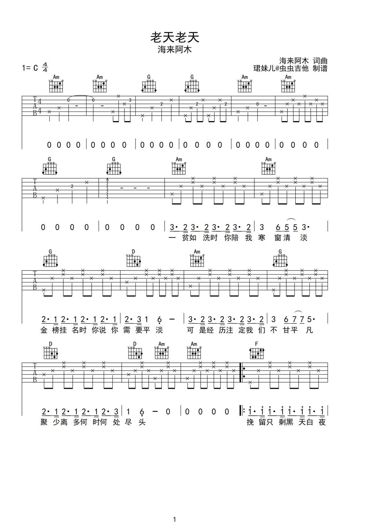 老天老天吉他谱-弹唱谱-c调-虫虫吉他