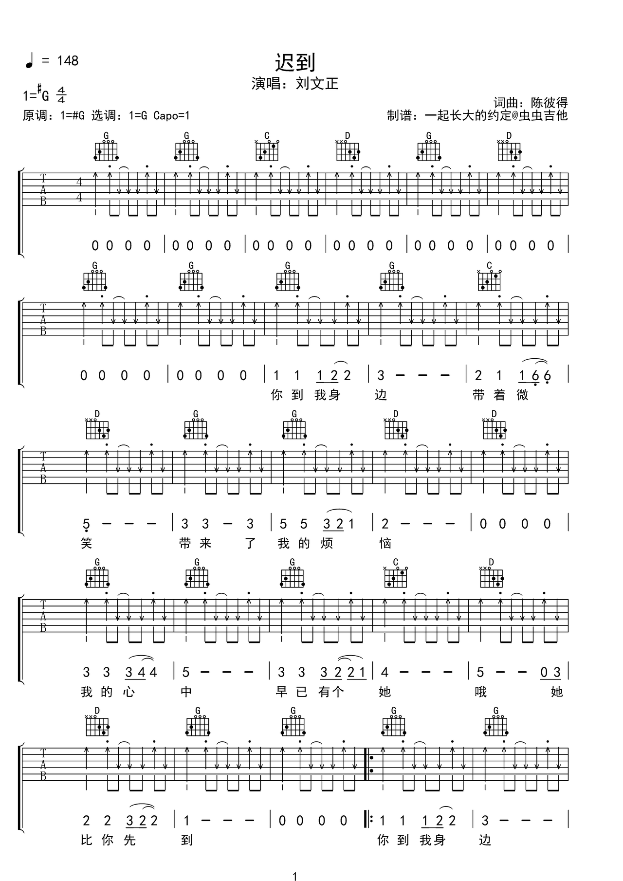 迟到吉他谱-弹唱谱-ab调-虫虫吉他
