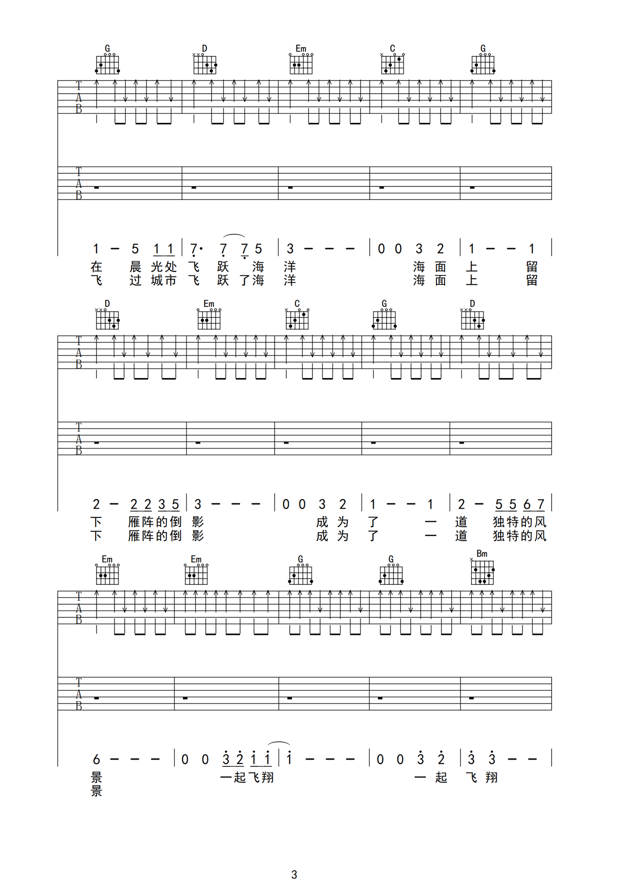伴你高飞 吉他谱