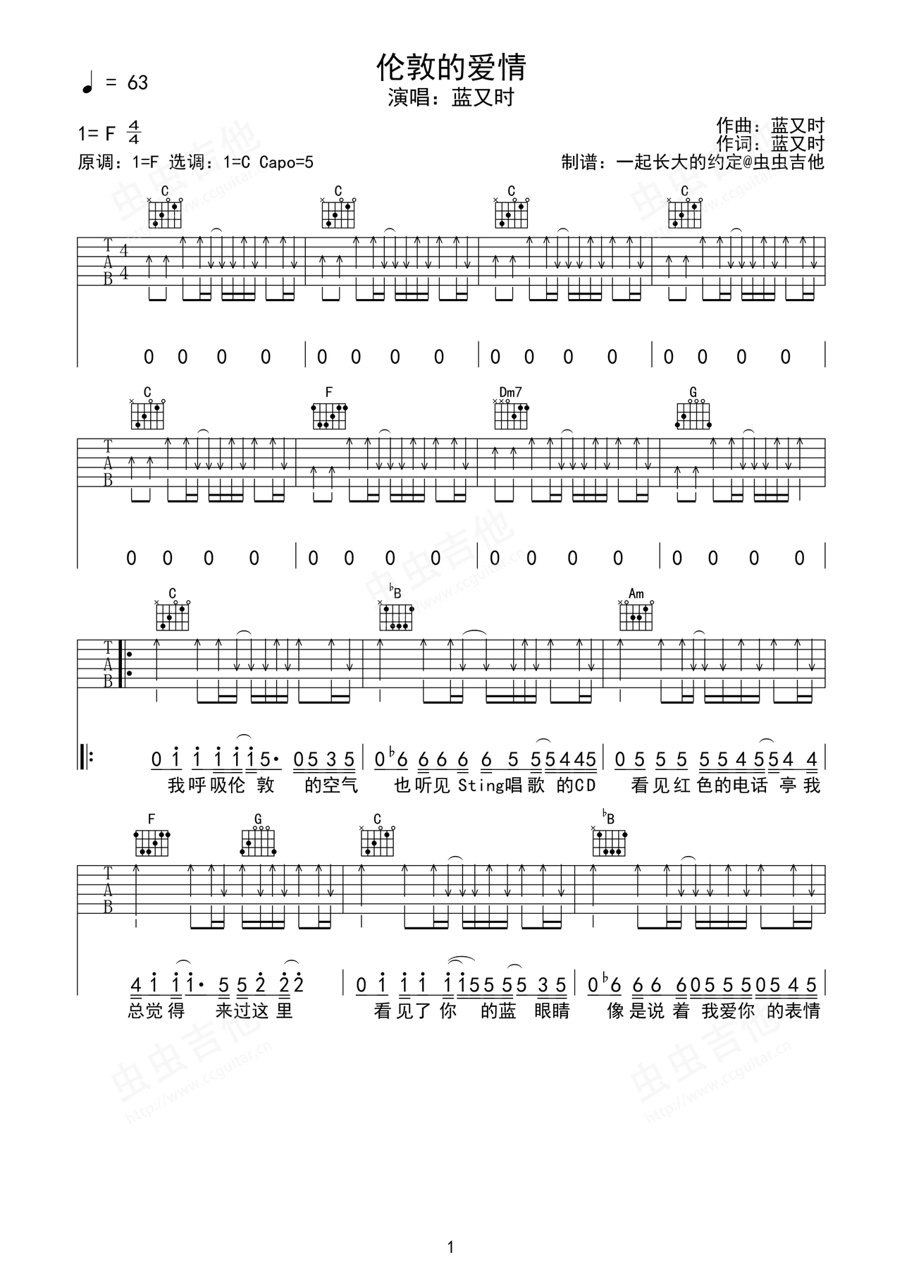 伦敦的爱情吉他谱-弹唱谱-f调-虫虫吉他