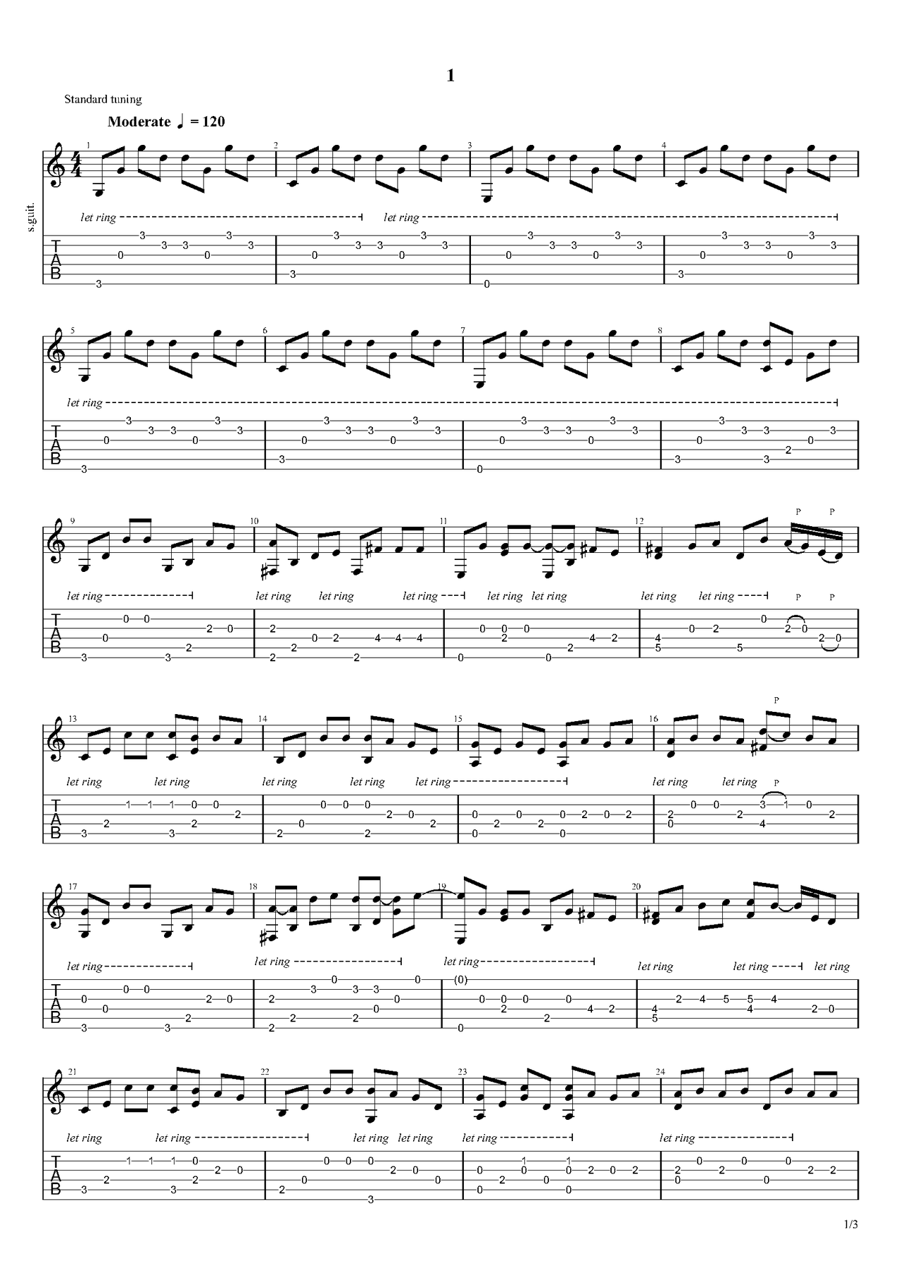 星晴吉他谱-指弹谱-g调-虫虫吉他