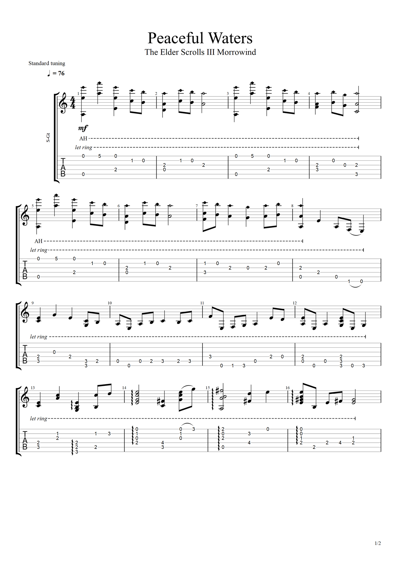 上古卷轴 《Peaceful Waters》指弹吉他谱