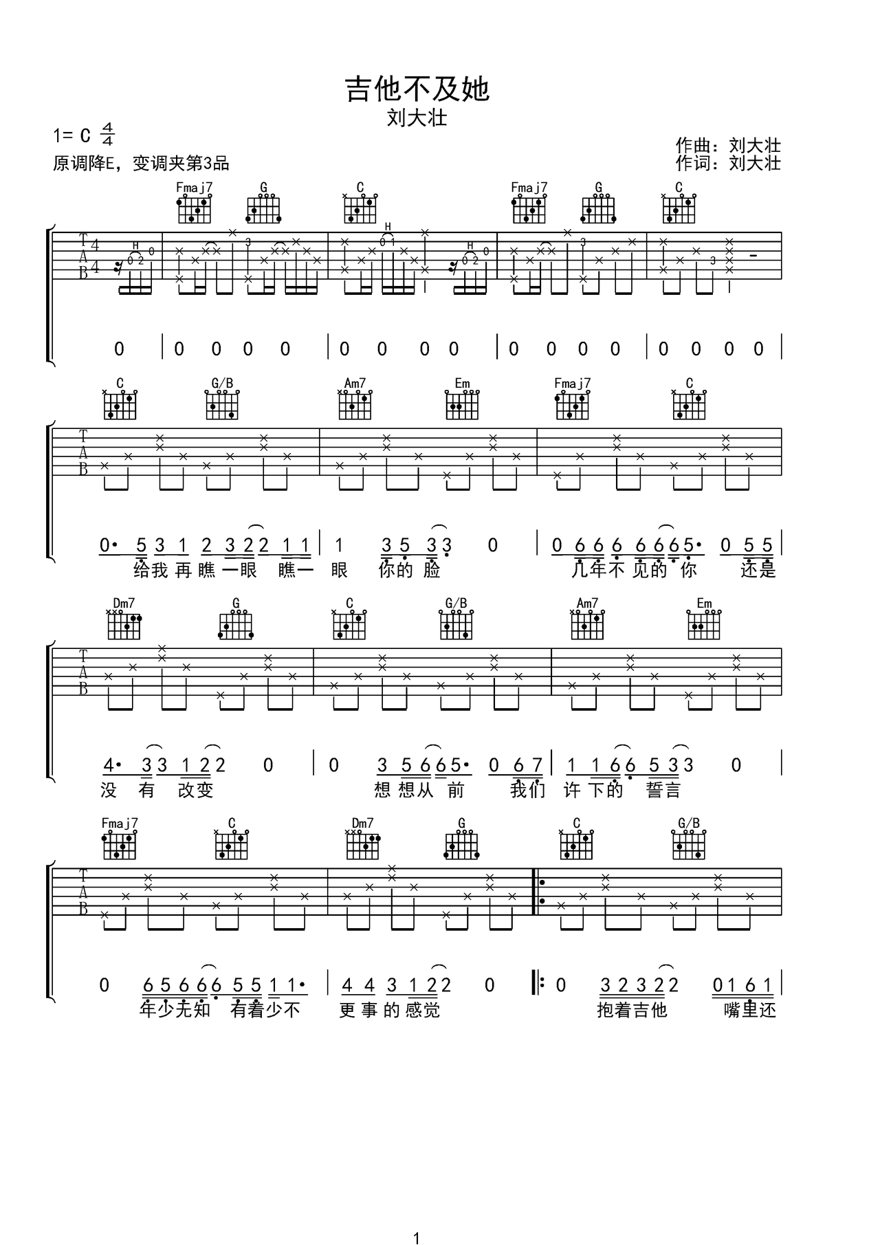 吉他不及她-弹唱谱-c调-虫虫吉他