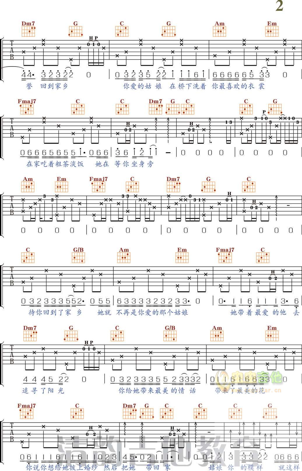 你的姑娘吉他谱-弹唱谱-c调-虫虫吉他