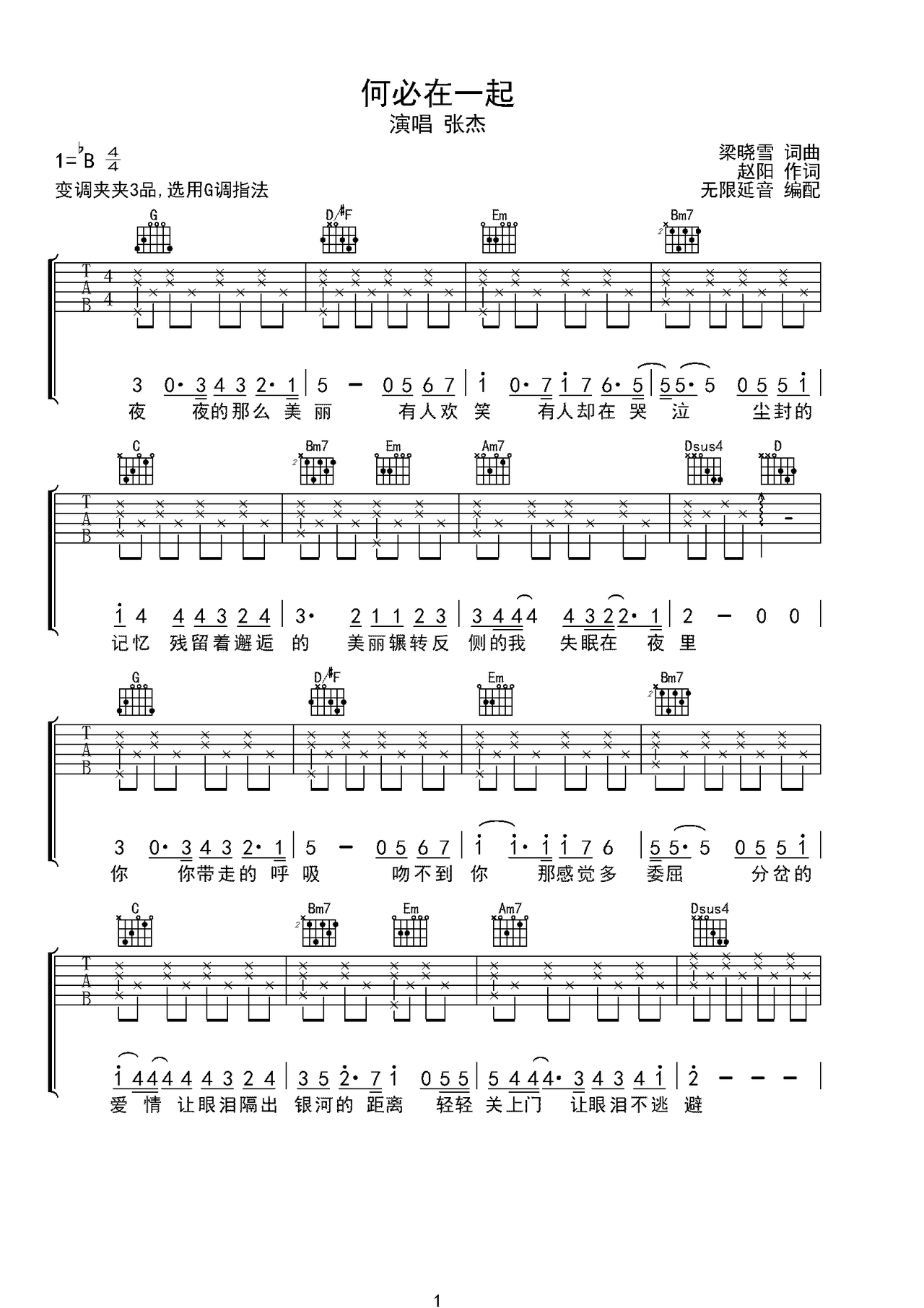 何必在一起吉他谱-弹唱谱-bb调-虫虫吉他