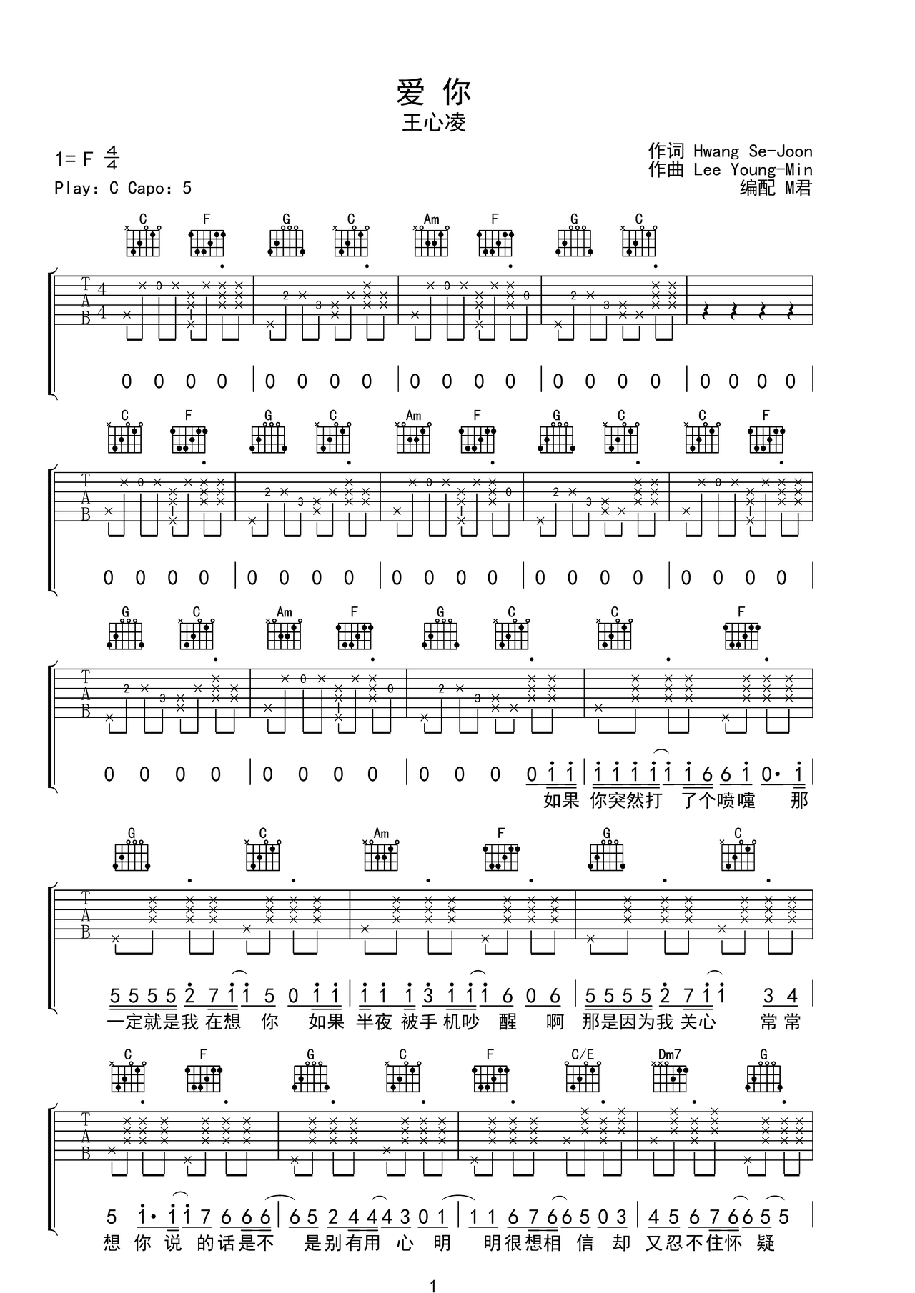 爱你吉他谱-弹唱谱-c调-虫虫吉他