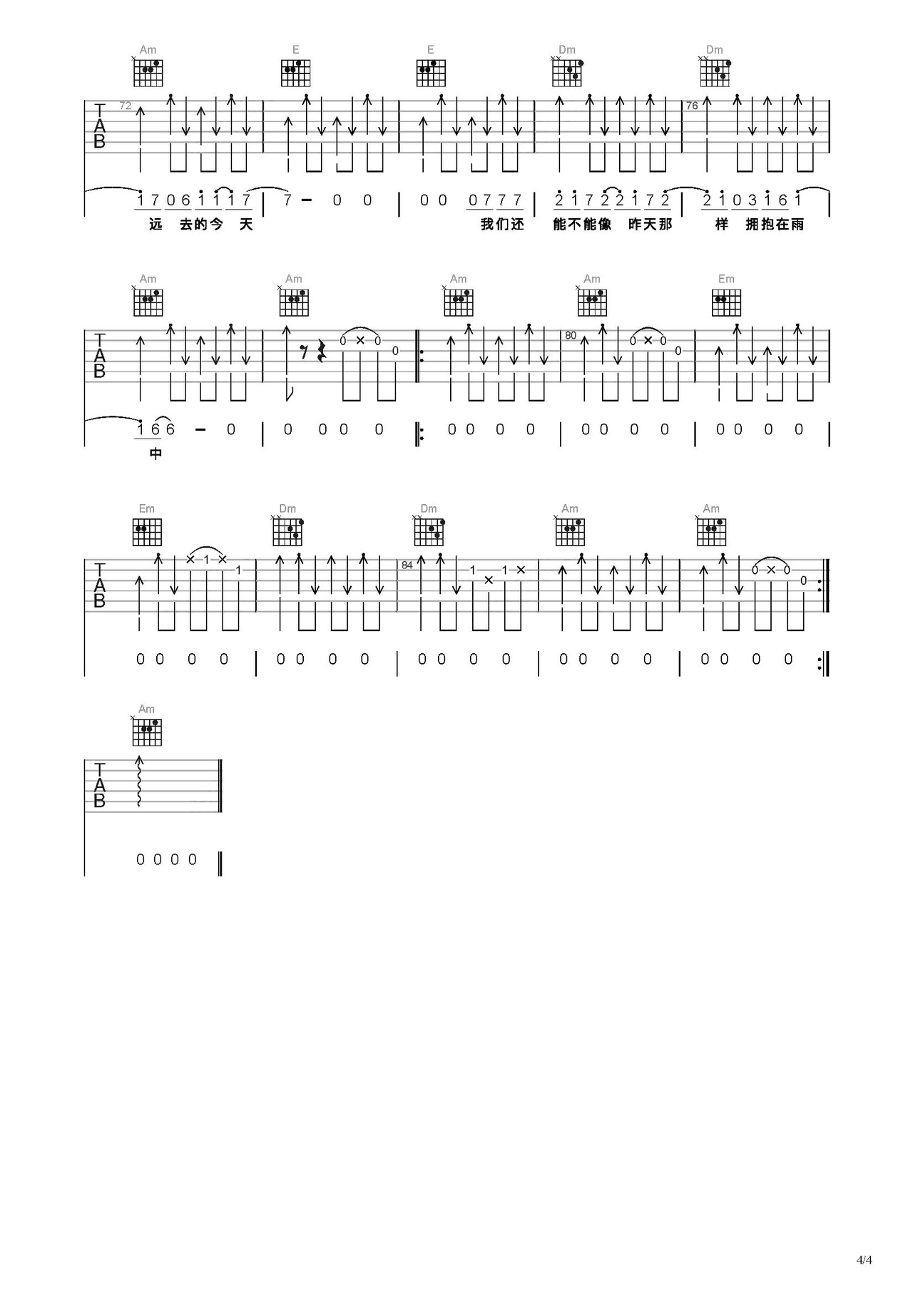在雨中吉他谱-弹唱谱-c调-虫虫吉他