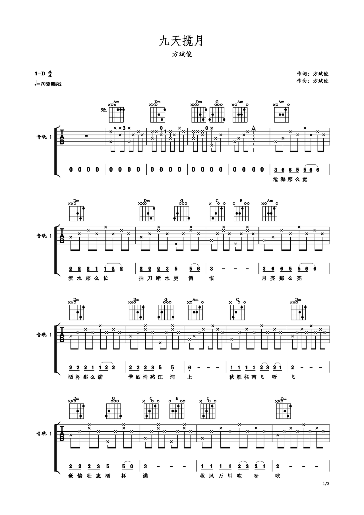 九天揽月-方斌俊 完美C调弹唱