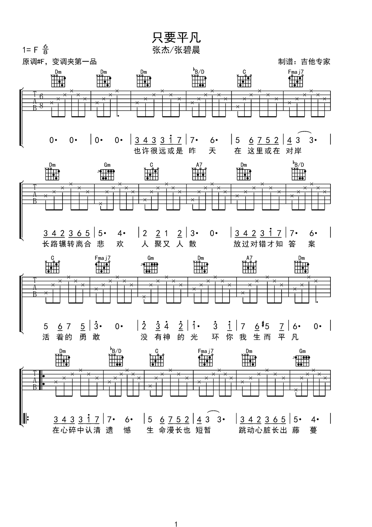 只要平凡吉他谱-弹唱谱-c调-虫虫吉他