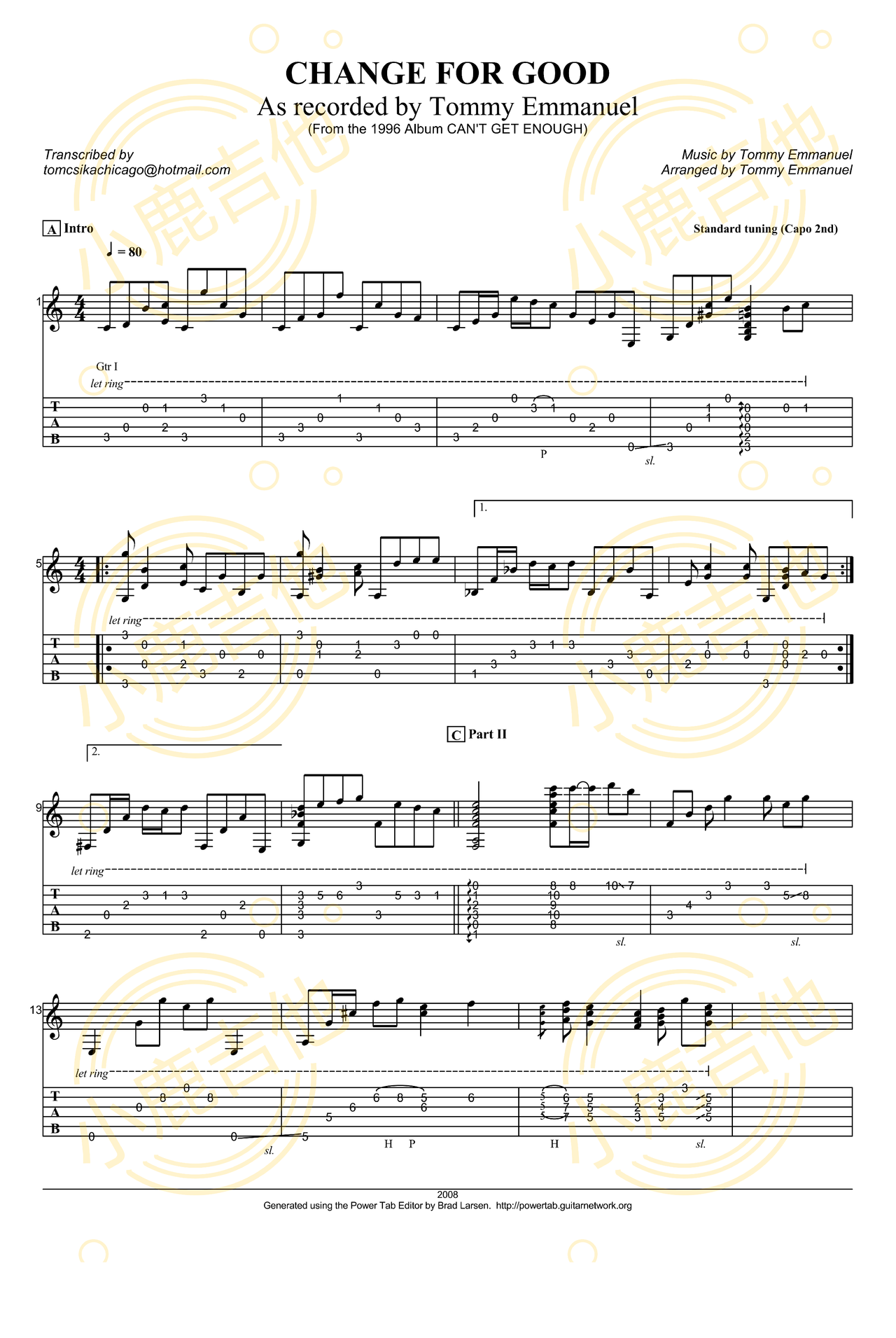 Change For Good - Tommy Emmanuel指弹吉他谱(小鹿吉他)