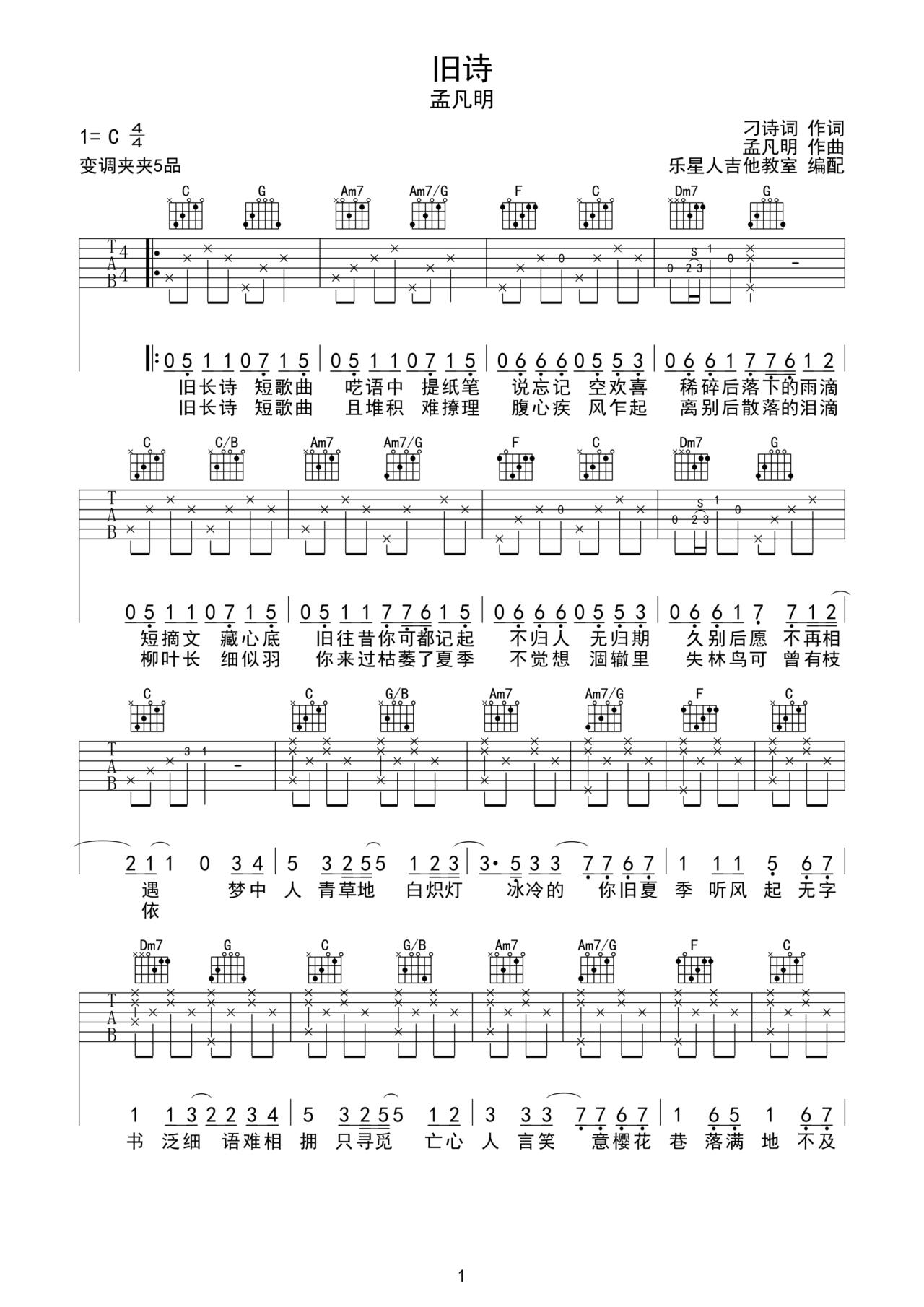 旧诗-孟凡明(原版吉他谱)