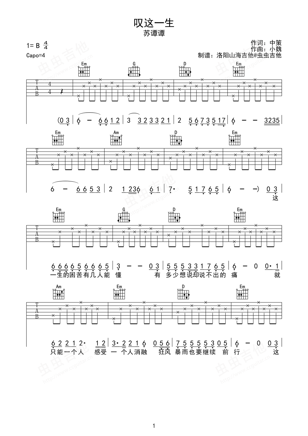 叹这一生吉他谱-弹唱谱-g调-虫虫吉他