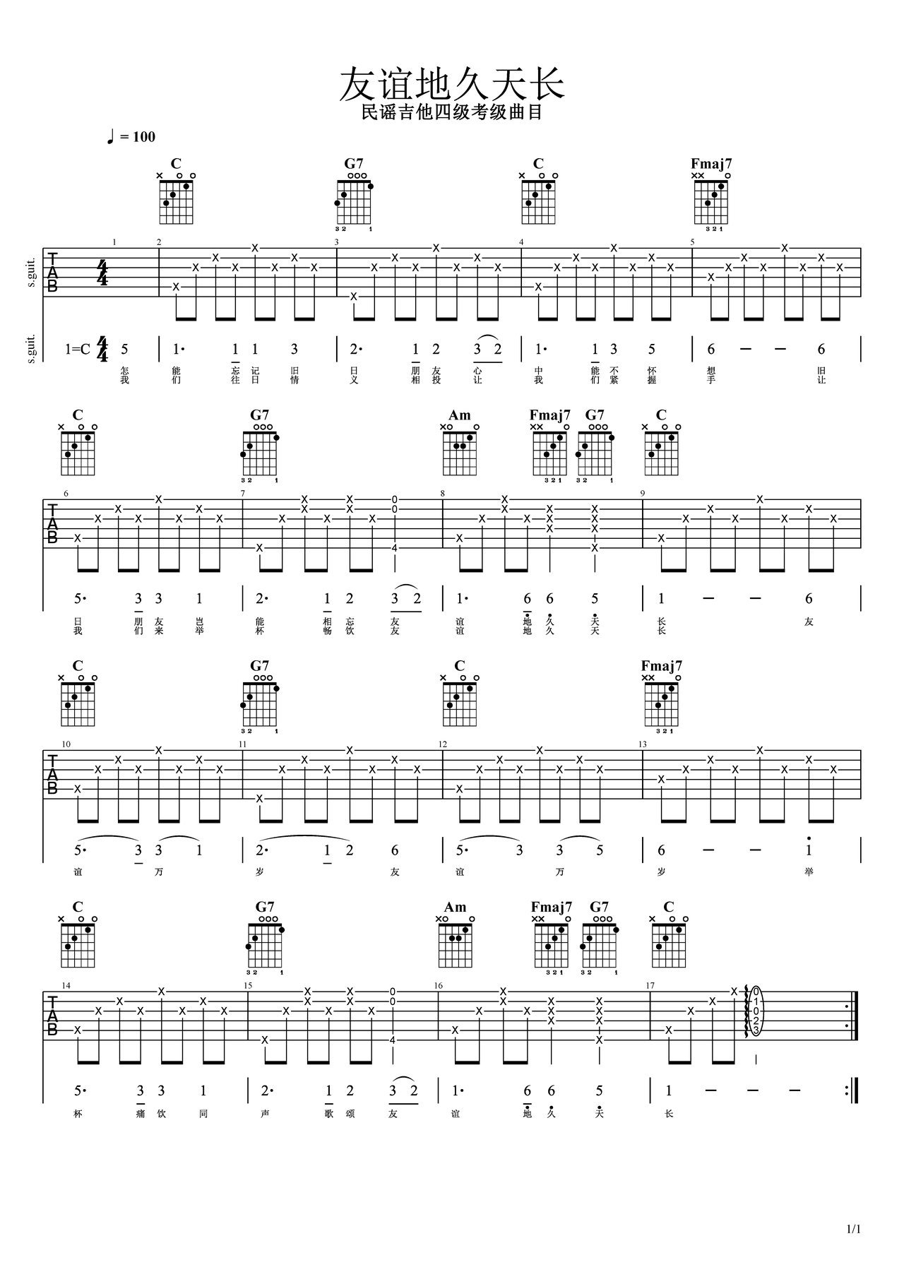 友谊地久天长吉他谱-弹唱谱-c调-虫虫吉他