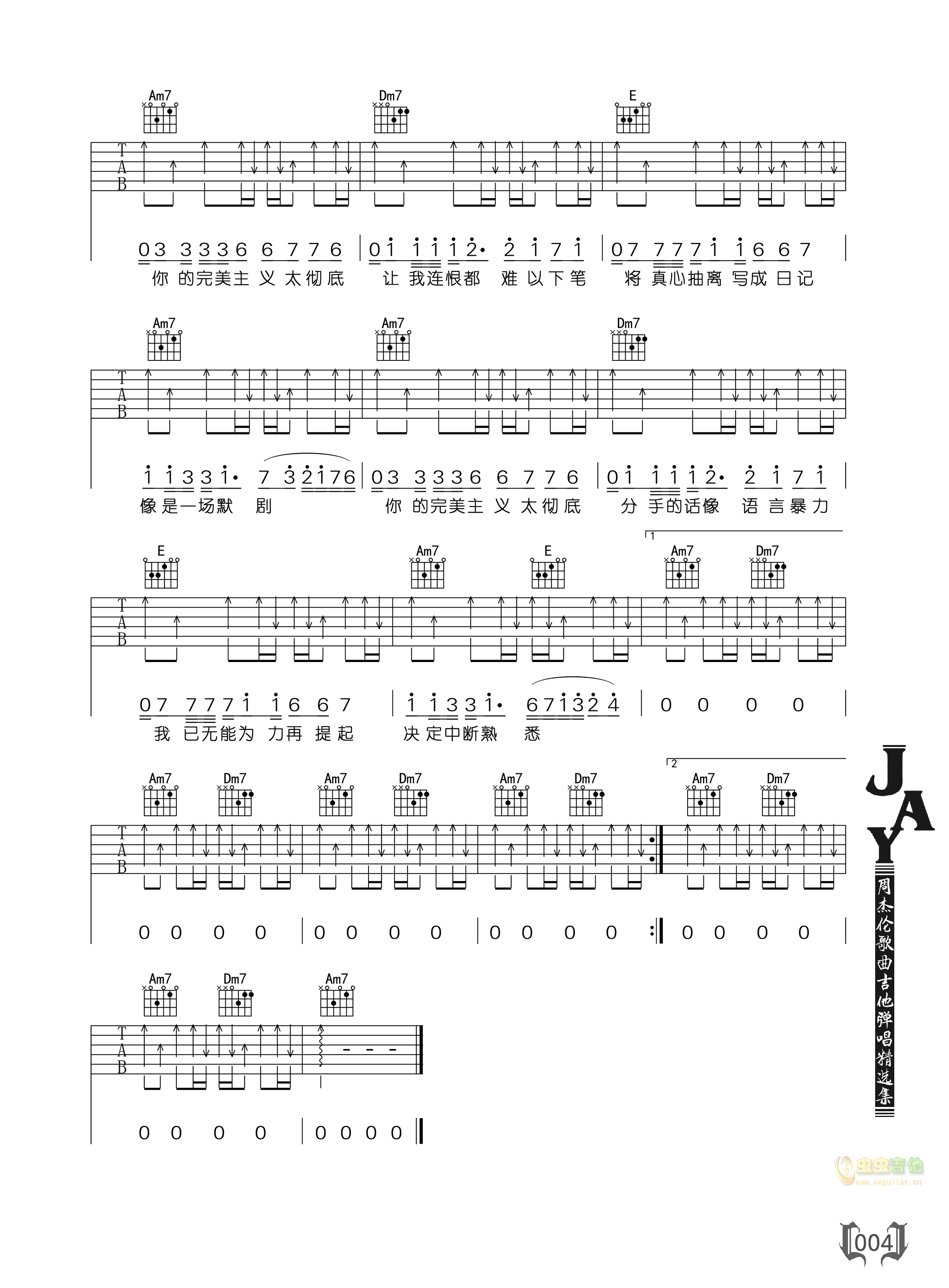 完美主义吉他谱-弹唱谱-c调-虫虫吉他